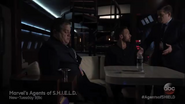 Cal is furious Coulson would take his revenge from him and starts attacking him. Meanwhile, Ward has gotten out of his ties and begins cutting Skye out of hers. Once she is free and Ward turns her back to him, she shoots him. Agent 33, who is devastated over the death of Dr. Whitehall, eventually finds him, and Ward offers to get them out of there and figure out what to do next. Skye finds her father viciously beating Coulson and asks him to stop. When he doesn't Skye points her gun at him and threatens to shoot. He gets off of Coulson and promises to leave, and says goodbye to her daughter and calls her by her real name "Daisy".