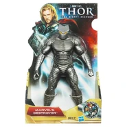 Once it recovered, it reformed to face Sif and blasted her off of itself. When the four tried to regroup, Destroyer blasted them into different buildings and blasted Volstagg, badly hurting him. Once everyone was at safe distance, Thor himself approached the Destroyer and begged Loki to stop the rampage and take his life instead. The Destroyer powered down its beam but backhanded Thor, fatally wounding him. However, as the Destroyer was walking back to the Bifrost site, Mjölnir returned to Thor and restored his powers. The Destroyer tried to blast Thor, but was knocked over. Once it came back into commission Thor lifted it off the ground into a tornado. The Destroyer tried to blast Thor, but the god of thunder hurled his hammer though its head, shutting it down permanently.