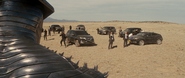 Sometime later, when Thor was banished due to his actions on Jotunheim, Loki (who was filling in for Odin after falling into Odinsleep) sent the Destroyer to Earth to destroy his brother and everything else that got in the way. The Destroyer passed through the Bifrost Bridge and landed in New Mexico, Earth. Once there it encountered agent Phil Coulson and a team of S.H.I.E.L.D. agents, but quickly destroyed their cars before moving onto the small town. Once there it went on a rampage on the town but it encountered the Warriors Three and Lady Sif. Volstagg tried to jump it but was smacked back onto a car. But before the Destroyer could kill him, it was stabbed by Sif and briefly taken out of commission.