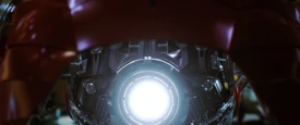 After Obadiah Stane steals Tony's arc reactor to power his Iron Monger armor, Tony goes after him in the Mark III using his old Mark I chest piece. However, the Mark I chest piece is not designed to be used with the Mark III armor, leaving it underpowered and rapidly draining the arc reactor. The Mark III suffers heavy damage, but briefly gains the upper hand by leading Stane high into the atmosphere where Stane's armor ices up, Stane having never fixed the icing problem with his suit as Tony did with the Mark III. Nearly out of power, Tony lands on the Stark Industries roof where he orders Pepper Potts to overload the factory's arc reactor and blast the roof. Tony manages to avoid Stane's attacks and Pepper overloads the reactor, killing Stane and knocking Tony unconscious in his armor.