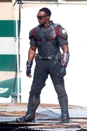 - Falcon Suit: The suit that Sam wears as Falcon that was designed for use with the EXO-7 Falcon jet pack.