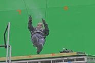 - Anthony Mackie did quite a bit of wirework flying as Falcon. The stunt coordinators would fly him 70 feet up in the air and land him precisely on a little tape mark so he could walk right out of the wires and into the scene. Luckily for all involved, Mackie is athletic and highly coordinated, which made everyone’s job easier.