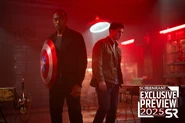Sam was invited to Tony Stark's party where he told Steve Rogers that all of his leads to find Bucky were cold. Sam also asked about Rogers' recent mission with the Avengers and if he planned to find an apartment in New York, while also making it clear he had no interest in joining the Avengers.