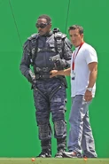 - Trailers, behind the scenes pictures, and promotional art showed Sam in a long sleeve flight suit during the battle on the Insight Helicarriers, whereas in the film the uniform was short sleeved.